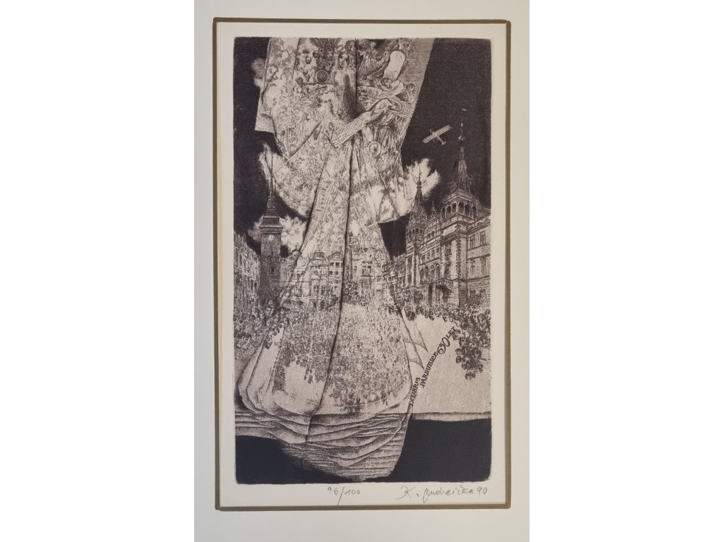 Rozmer: 17,5 x 10 cm / technika: lept / datované:1990 / číslované 96/100 / voľný list / nikdy nerámované /